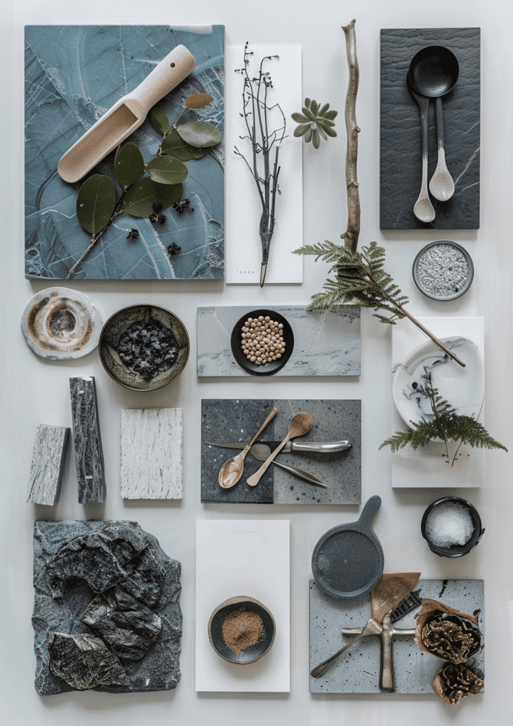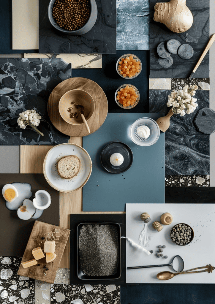 CREATE AN IMAGE OF A MOOD BOARD ON MJ